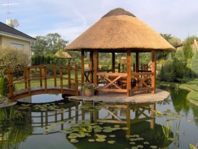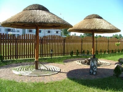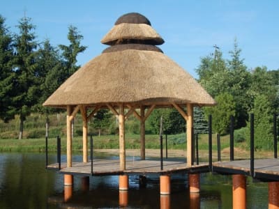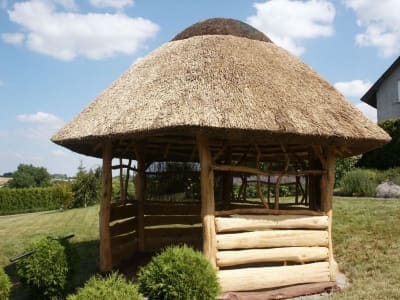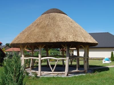 Çardaklar, pratik işlevlerinin yanı sıra, bahçeye uyum sağlayarak dekoratif bir öğe olarak da hizmet ederler. Kamıştan yapılmış çardak çatısı, doğal ve estetik bir bahçe görünümü sağlar. Önemli olan, kamıştan yapılmış çardakların bahçe için ideal bir seçim olmasıdır, çünkü sesi etkili bir şekilde bastırırlar. Yoğun yağmur yağışları sırasında bile, kamış çatı altında nispeten sessizdir, bu nedenle yağmurlu havalarda orada rahatça zaman geçirilebilir. Ayrıca, ızgara ve tütsüleme alanı içeren çardak siparişlerini de gerçekleştiriyoruz.